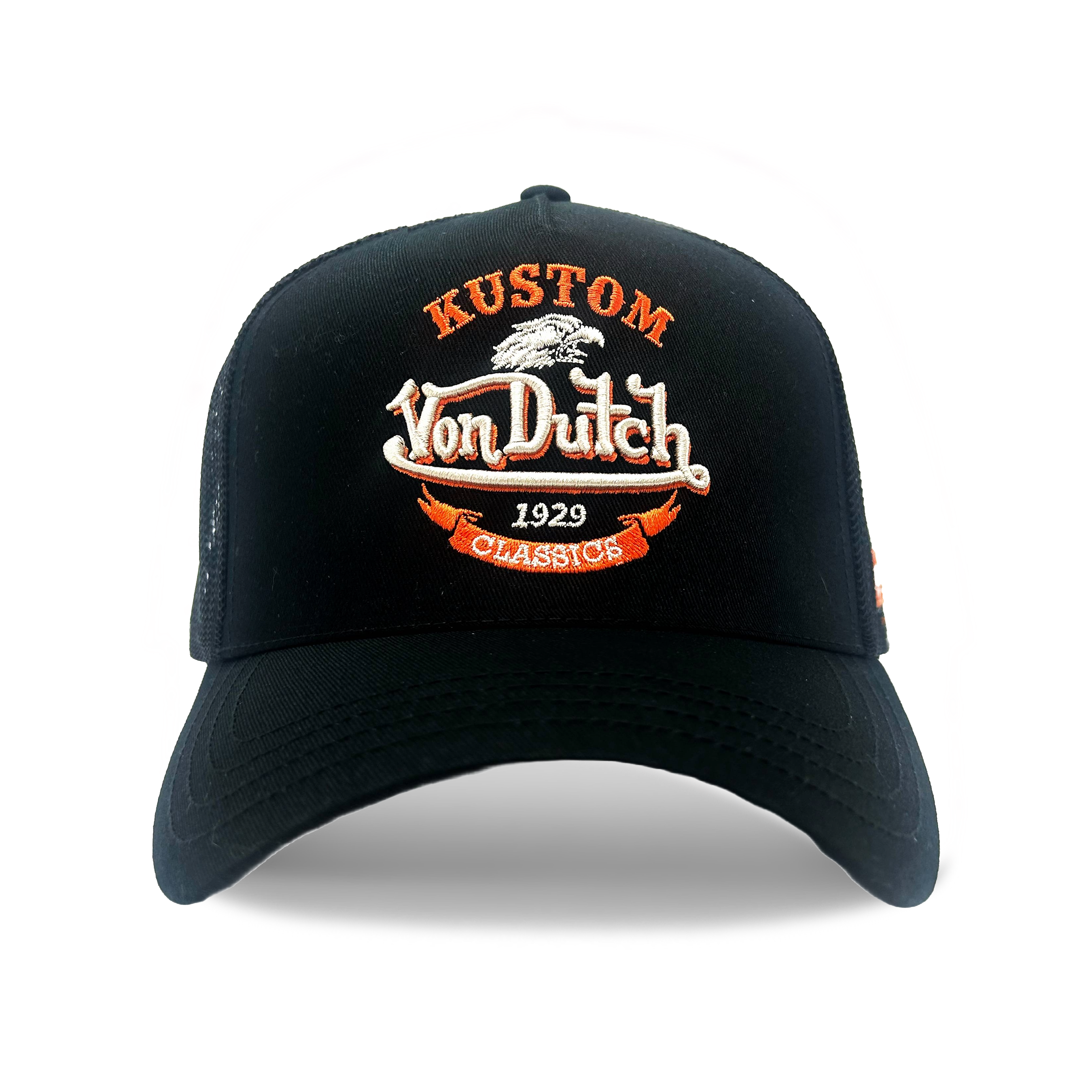 Von Dutch Black & Orange Kustom Classics Logo Trucker Hat