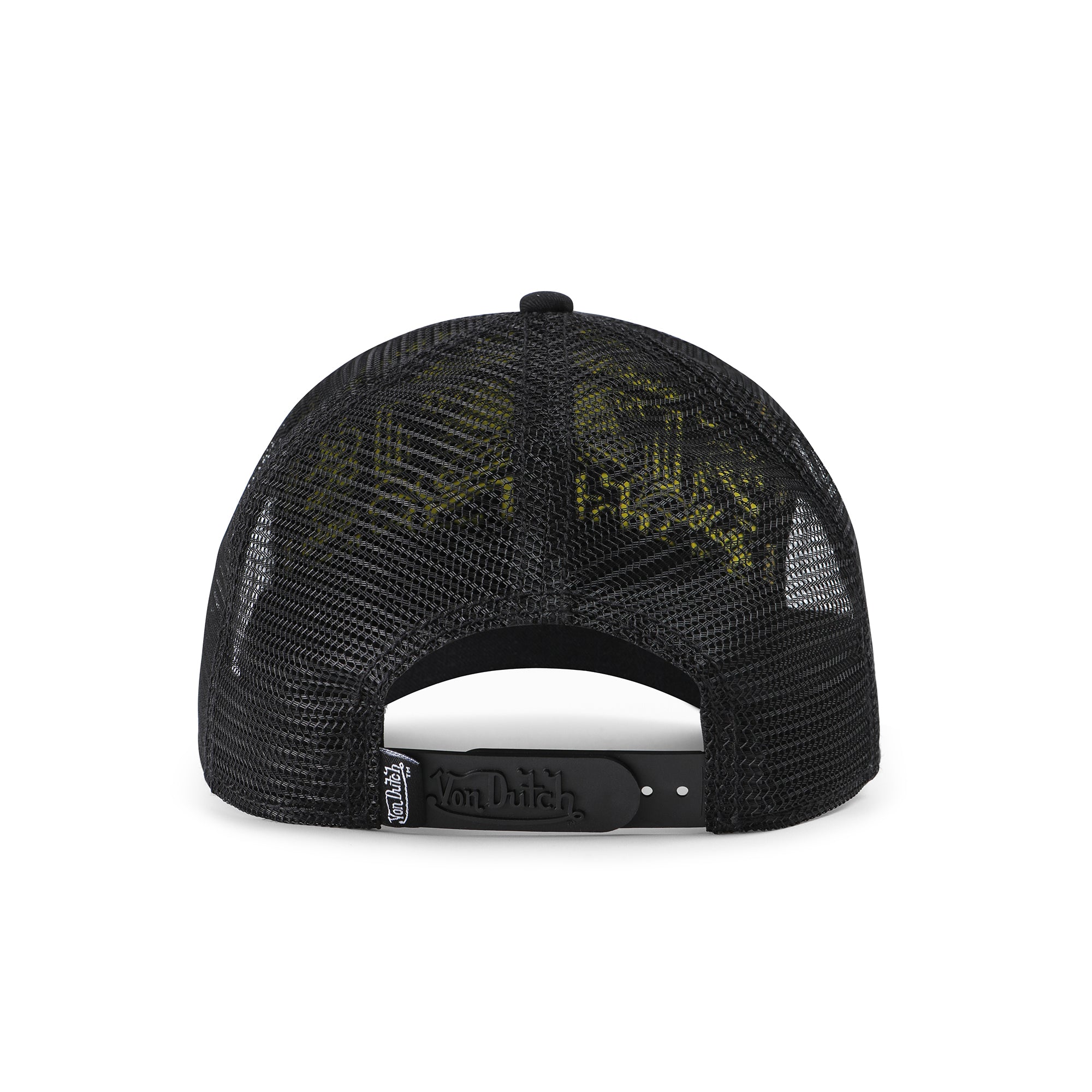 This Classic Snapback Trucker Hat by Von Dutch in Black and Yellow. Features the iconic logo patch on front, black breathable mesh rear, and an adjustable snapback panel. All headwear sales are final.
