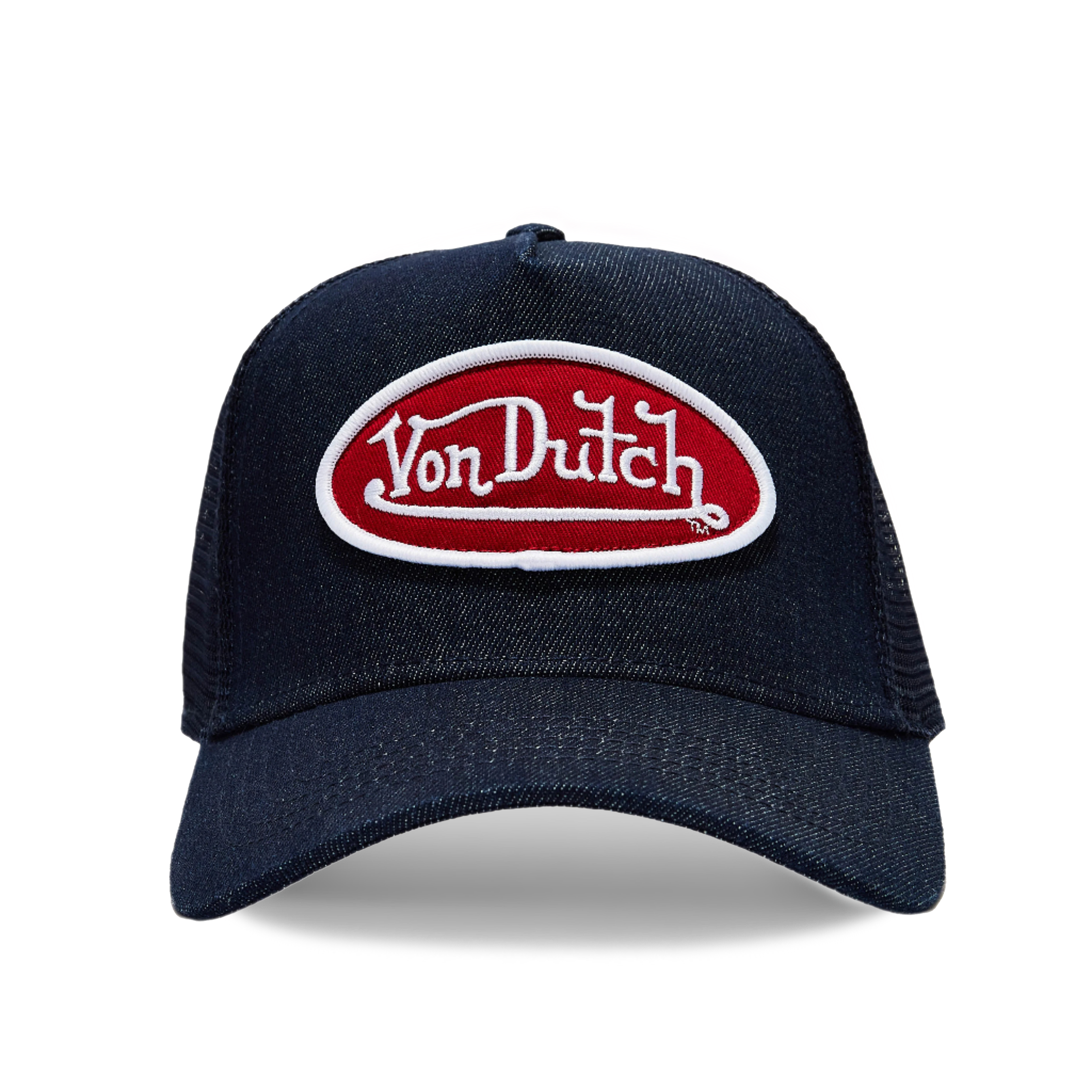 Von Dutch Dark Denim with Red & White Logo Trucker Hat