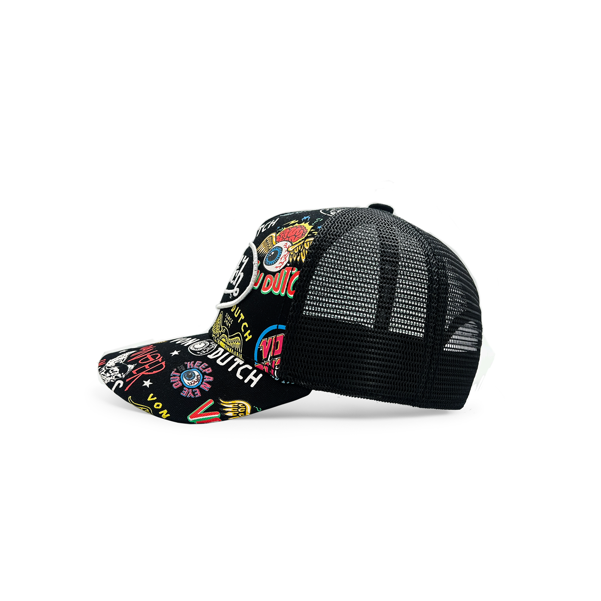 Von Dutch Kids Classic Trucker Hat- All Over Black Jax