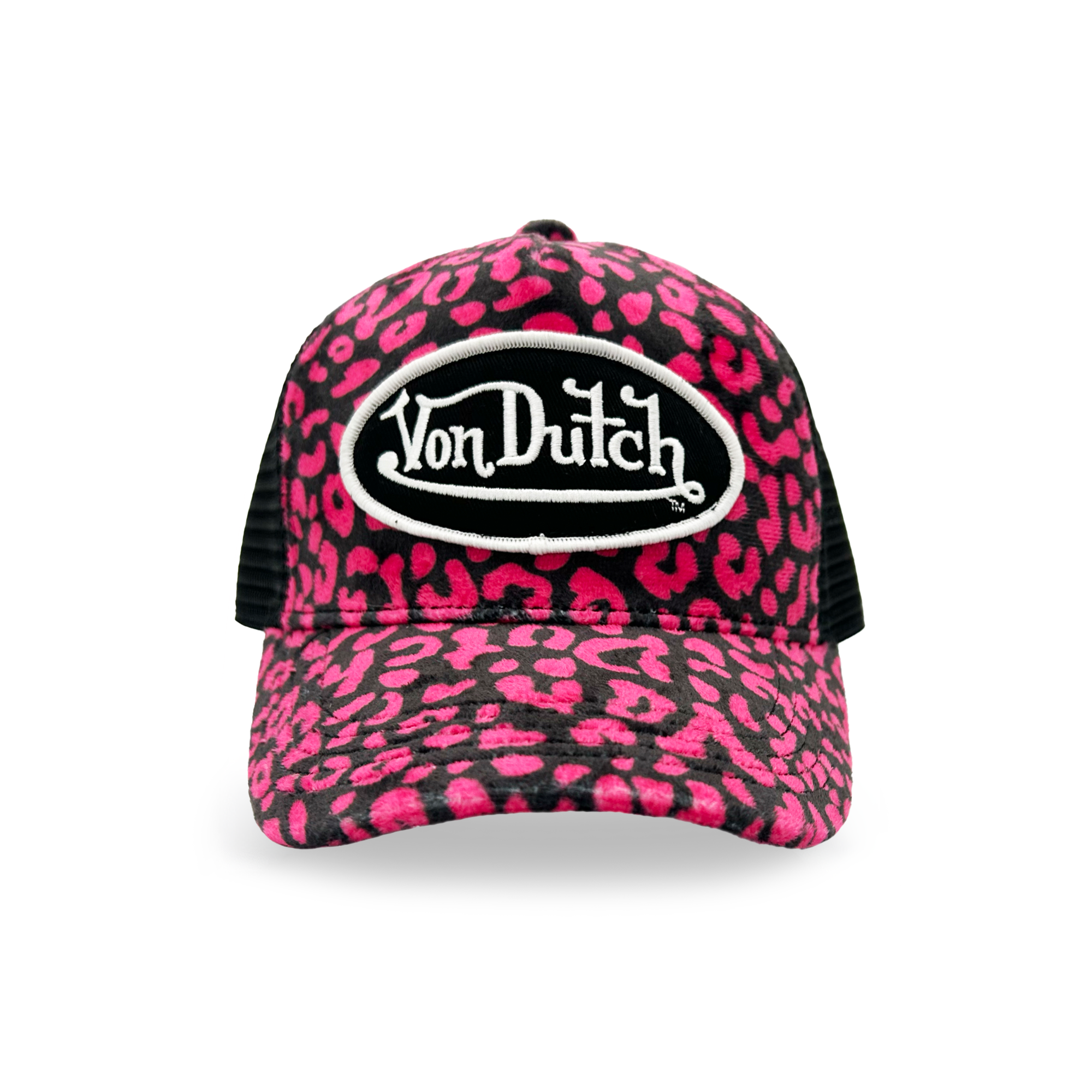 Von Dutch Kids Velvet Trucker Hat - Hot Pink Cheetah