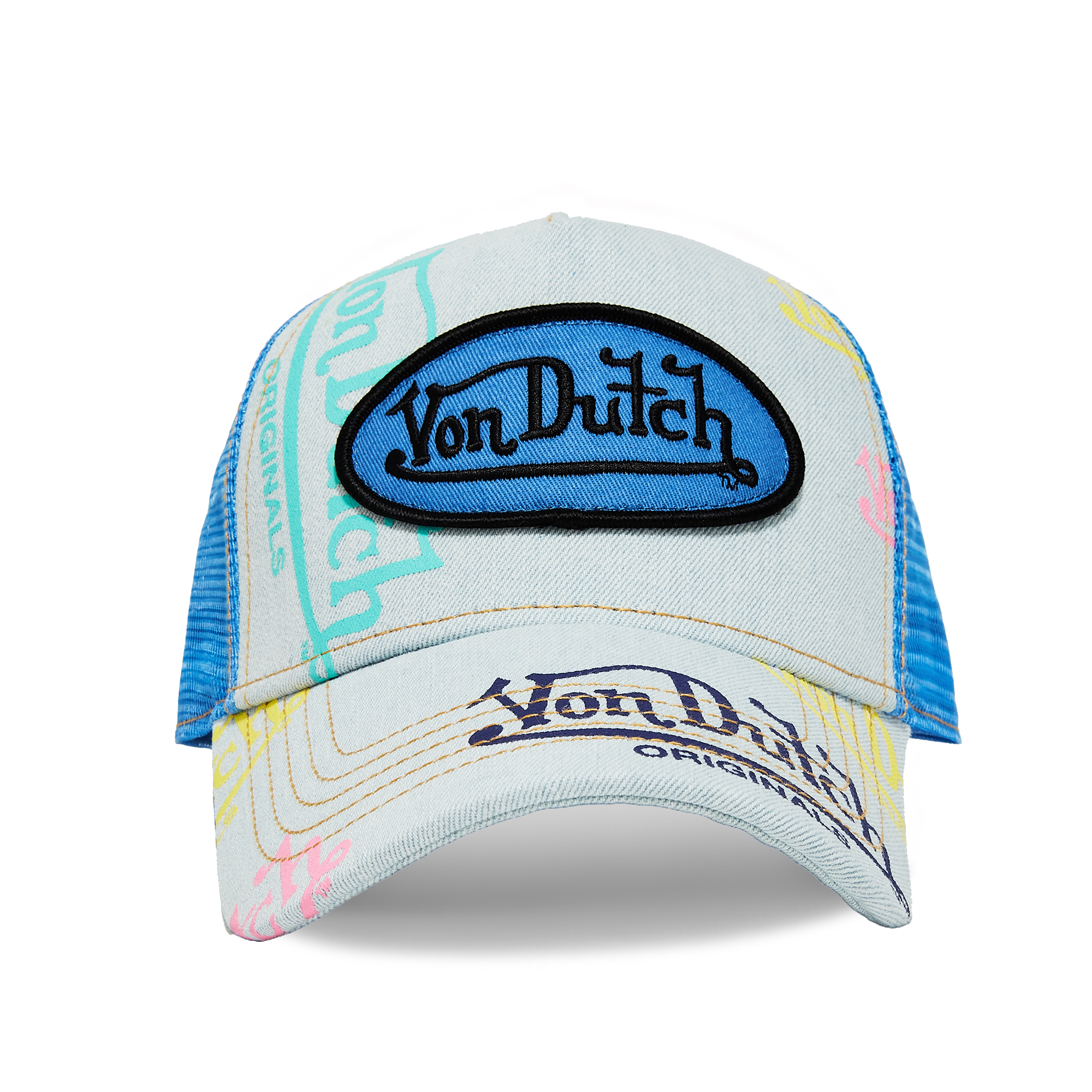 Von Dutch Light Denim Blue Logo Trucker Hat