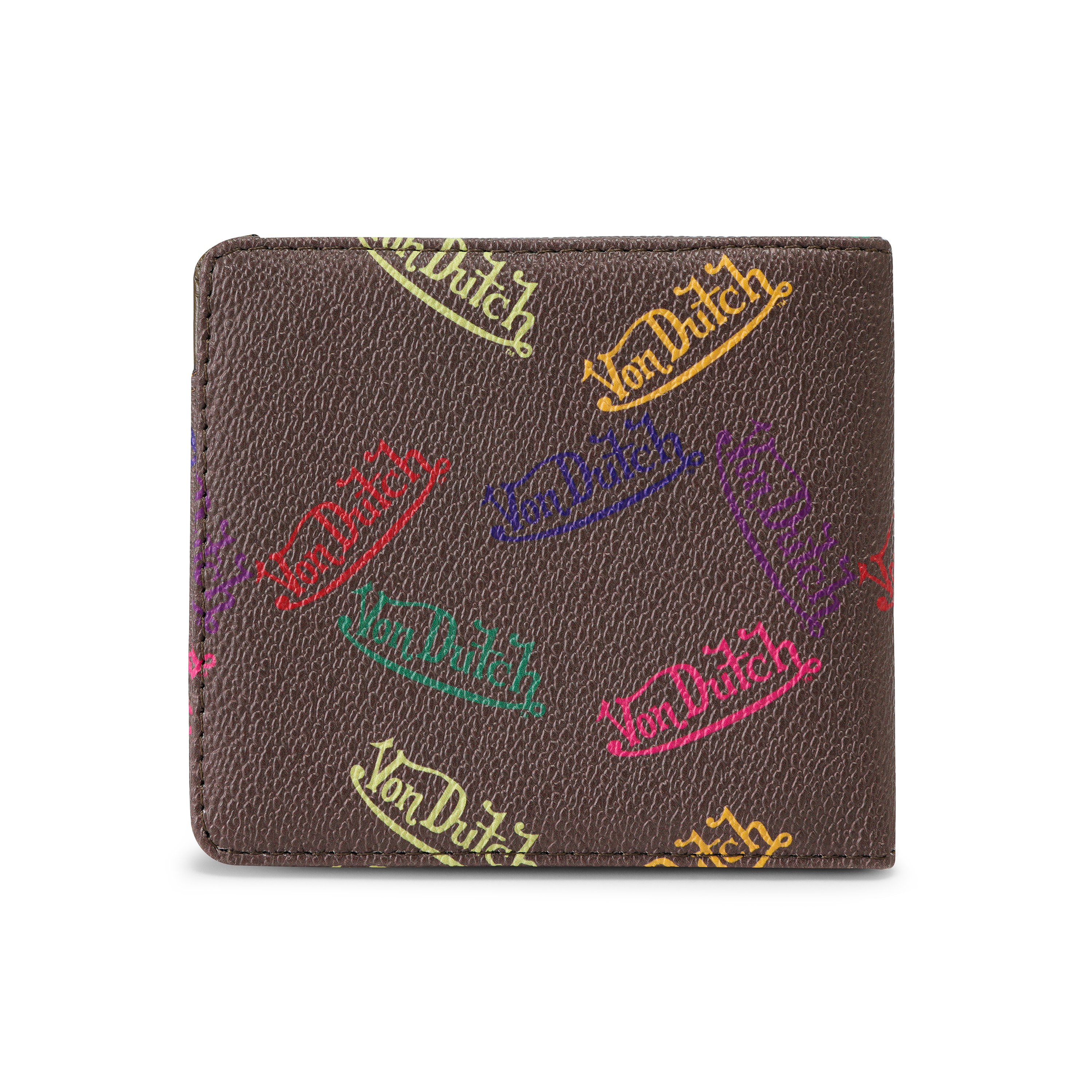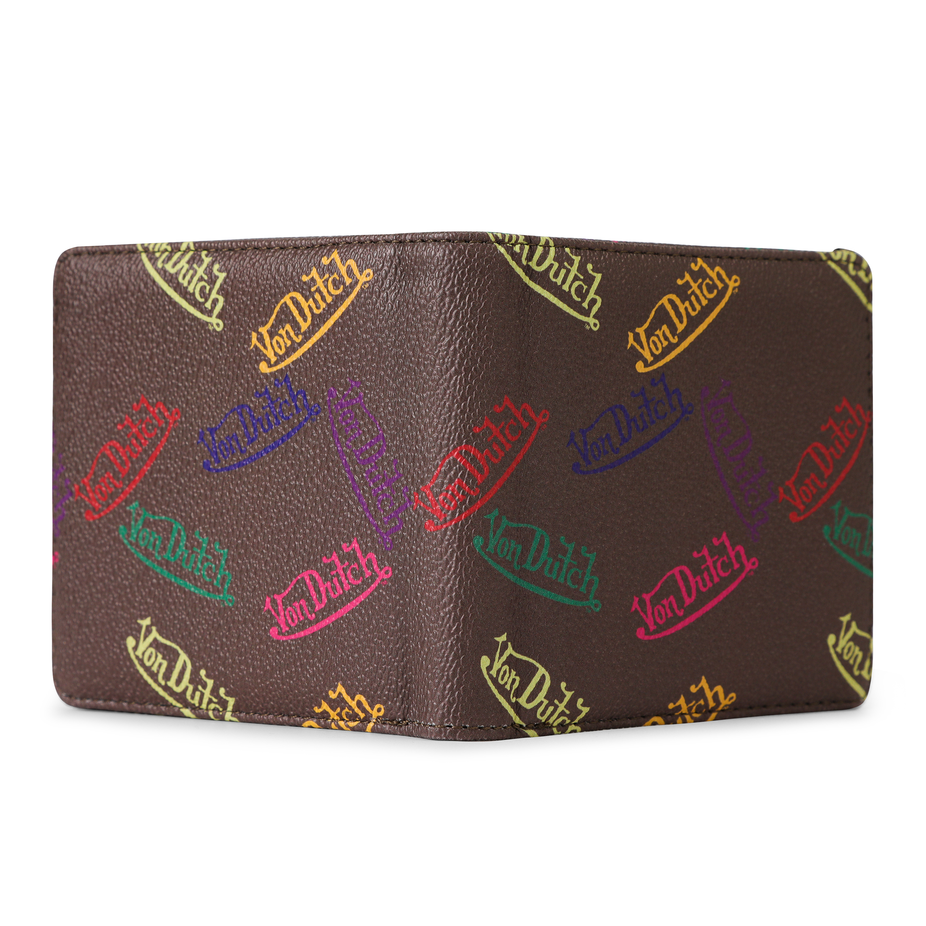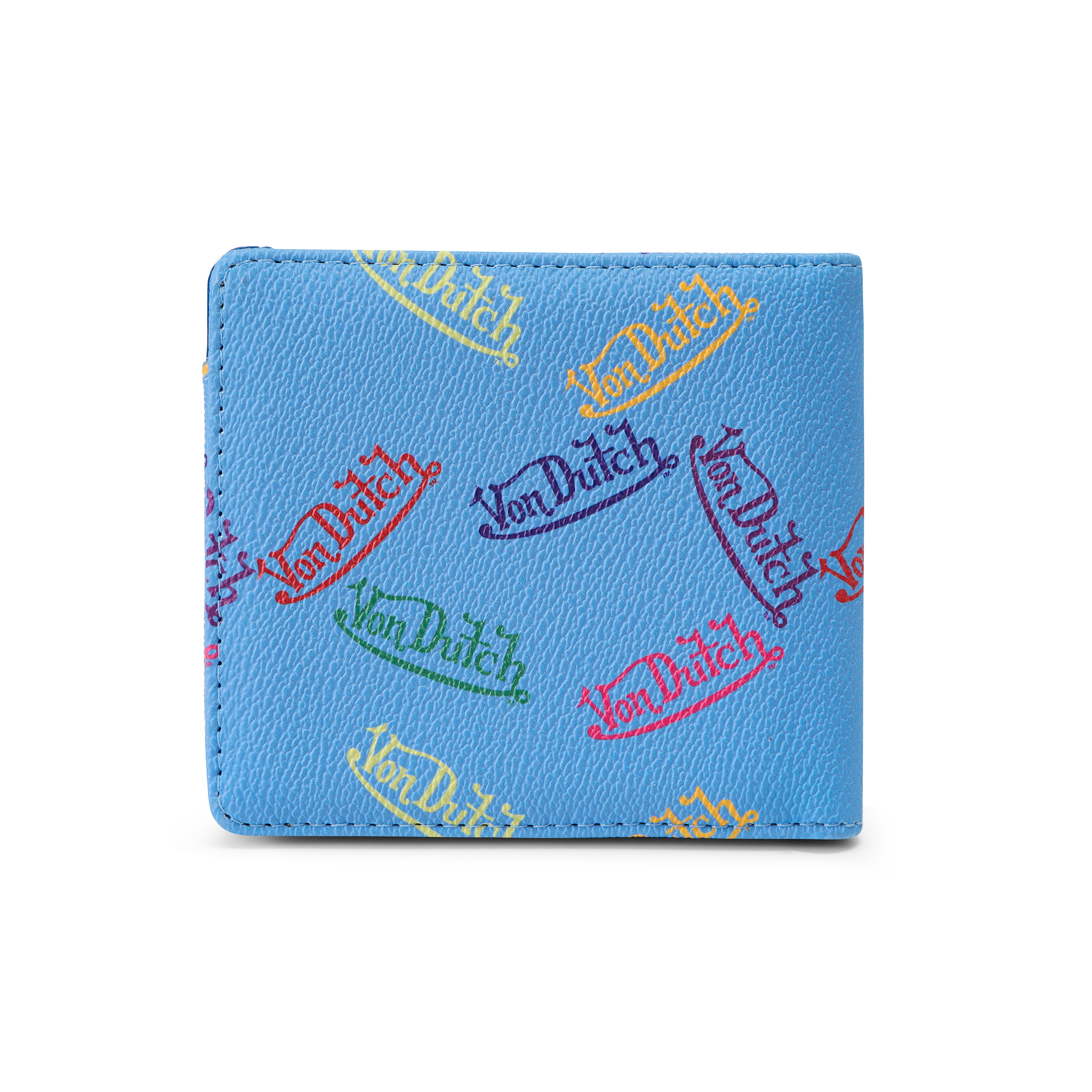 Classic Von Dutch vegan leather wallet for everyday use. Colors : Blue/Brown Vegan leather exterior with subtle texture All Over Neon multi logo Von dutch graphics Bifold design that stays slim in pocket Multiple card slots for daily essentials Full-length compartment for cash and receipts Durable construction made for regular…