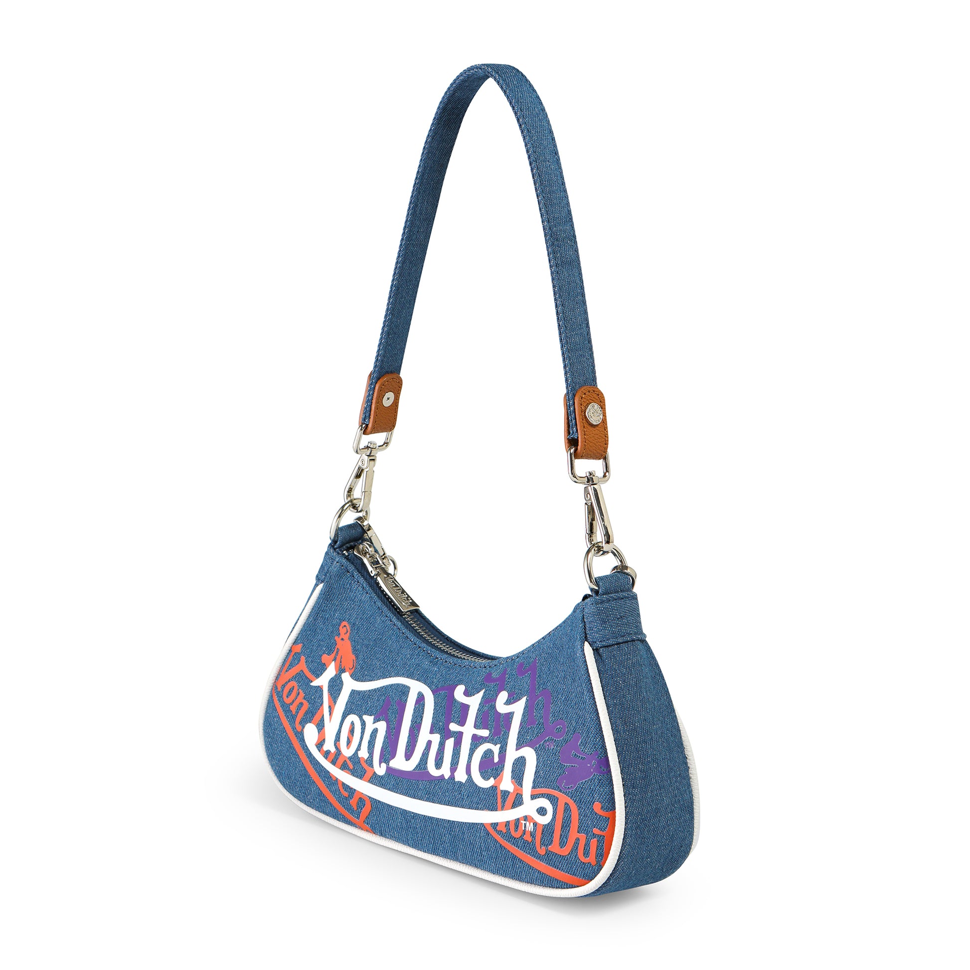 Orange & Purple Multi-Logo Denim Shoulder Bag