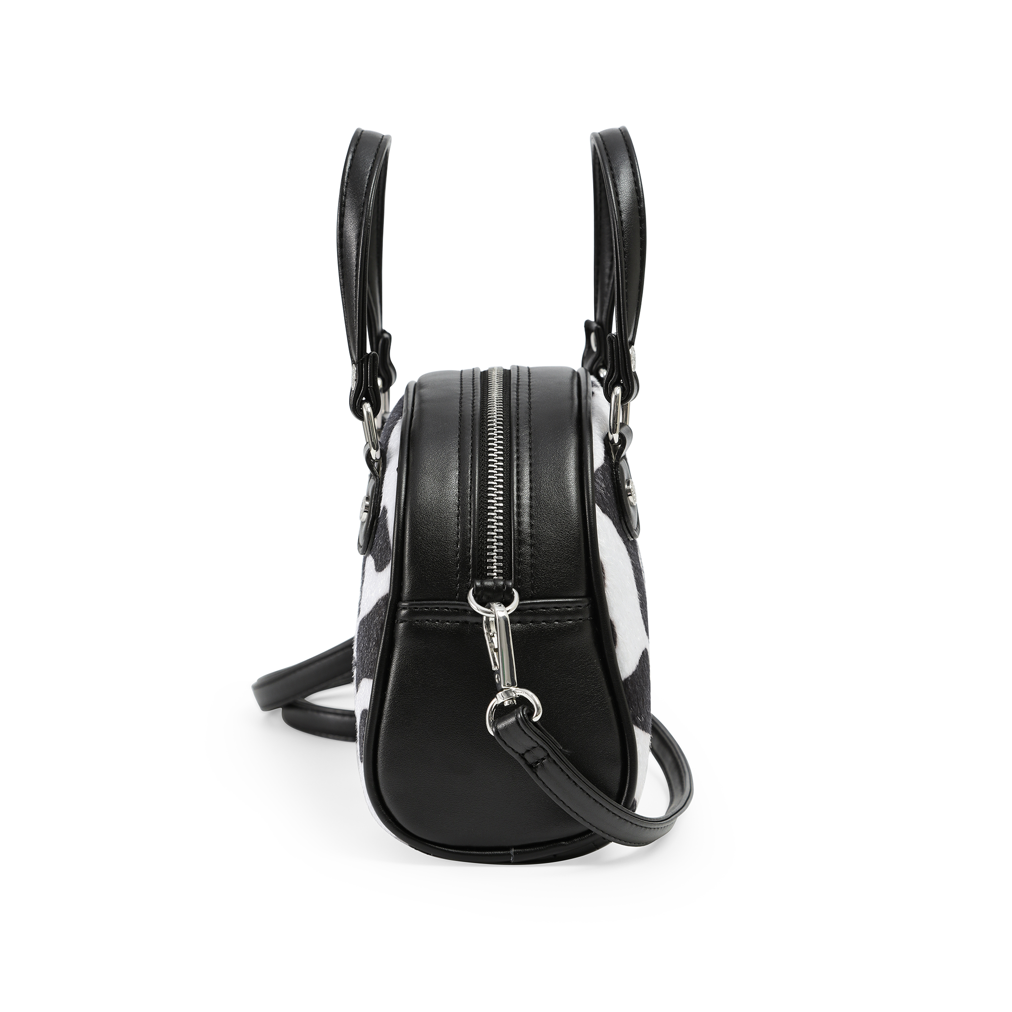 Von Dutch Black and White Cow Print Vegan Pony Hair Bowling Bag