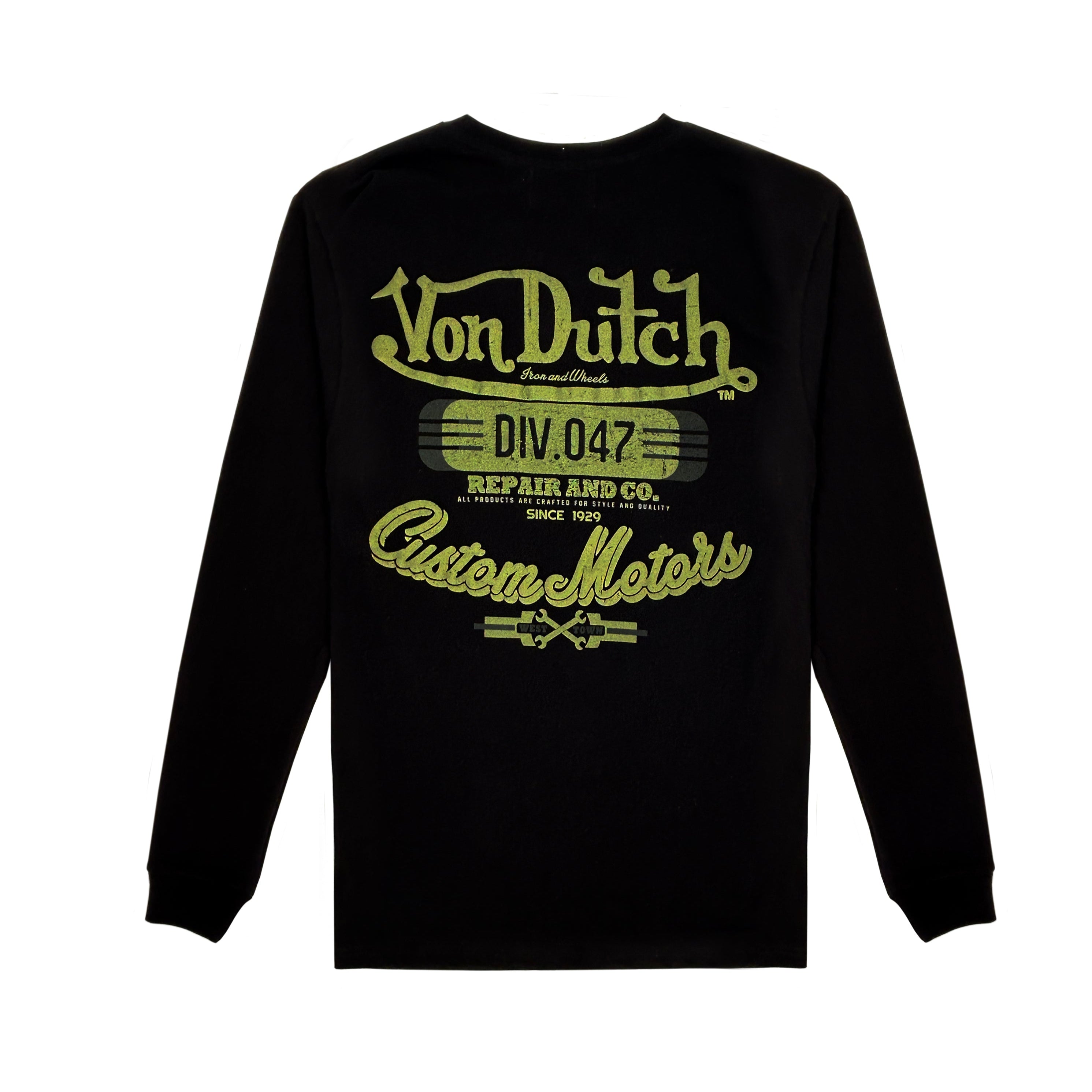 Cotton printed long sleeve tee, offers a classic Von dutch style and comfortable fit accompanied with a small Signature Von Dutch Logo on the chest and original custom Motos graphic .Regular Fit