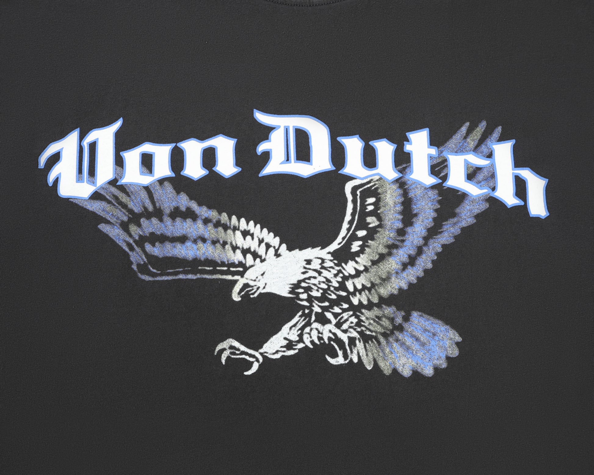 This graphic tee features the iconic Von Dutch logo paired with a striking eagle design, screen-printed on the front for a classic heritage-inspired look.