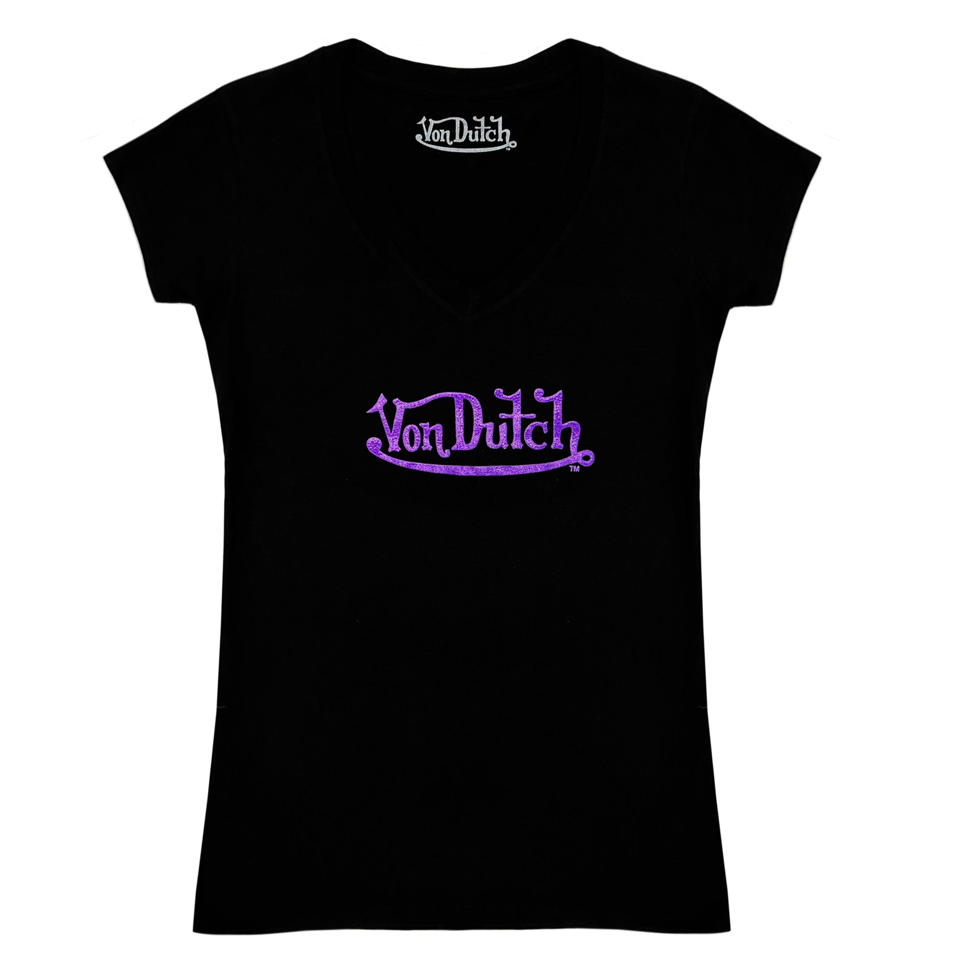 Von Dutch cotton printed V Neck with classic Von Dutch Glitter logo printed on the front.