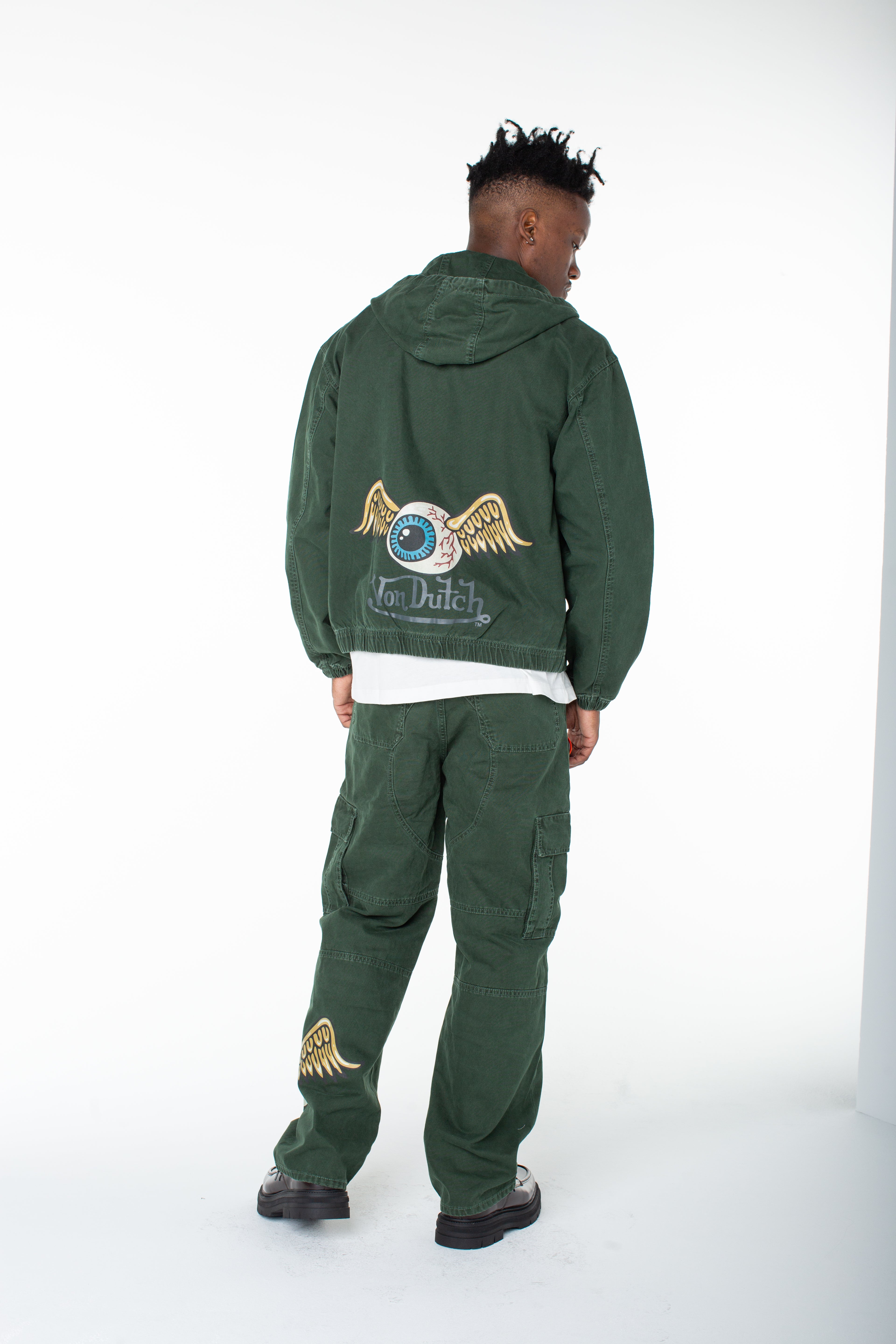 Serve streetwear in a zip up invaders hoodie, that features printed graphics in the front and back. Match it with the coordinated Hunter Double Cargo Pant.