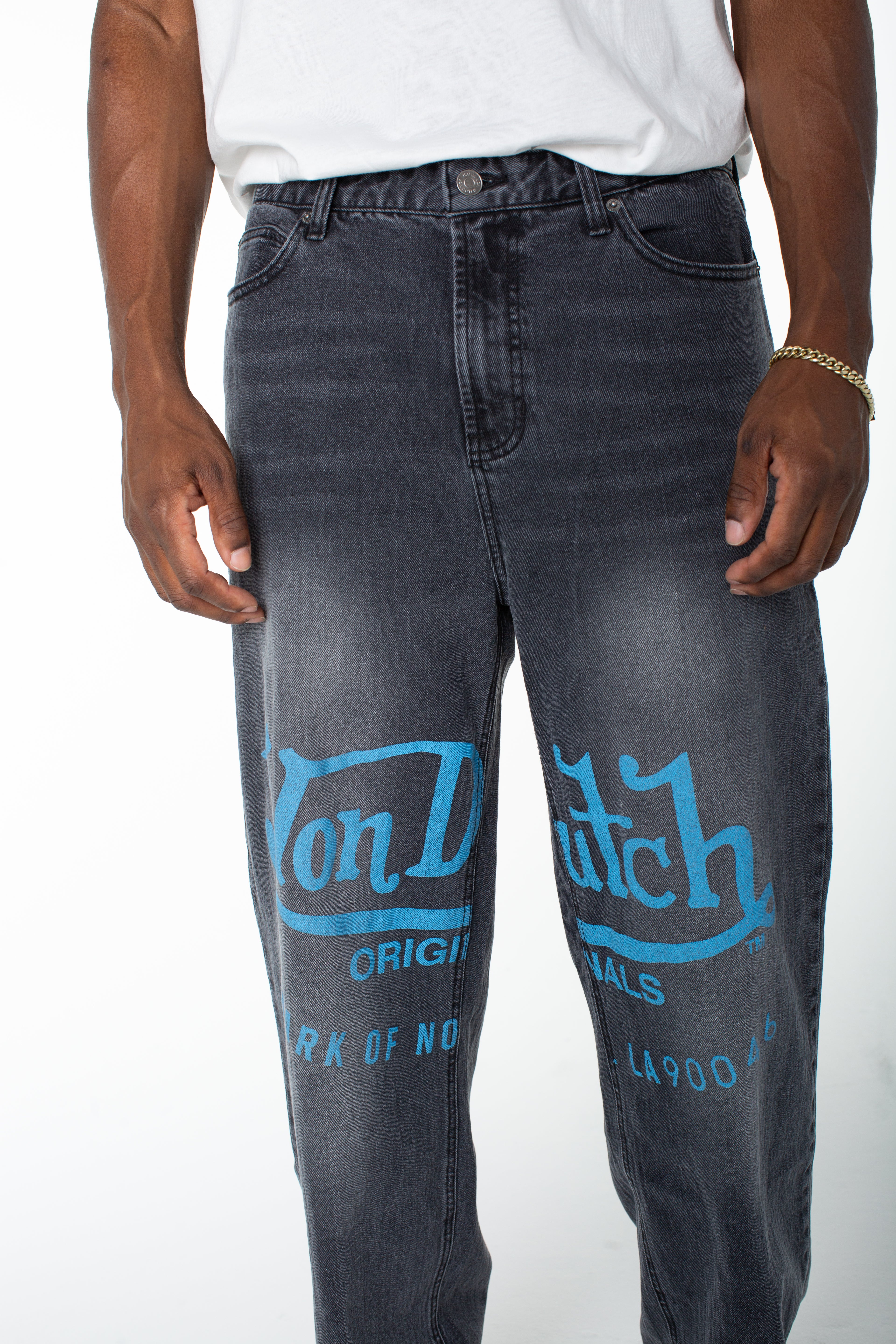 Von Dutch Men's Reaper Patch Front Logo Baggy Jean