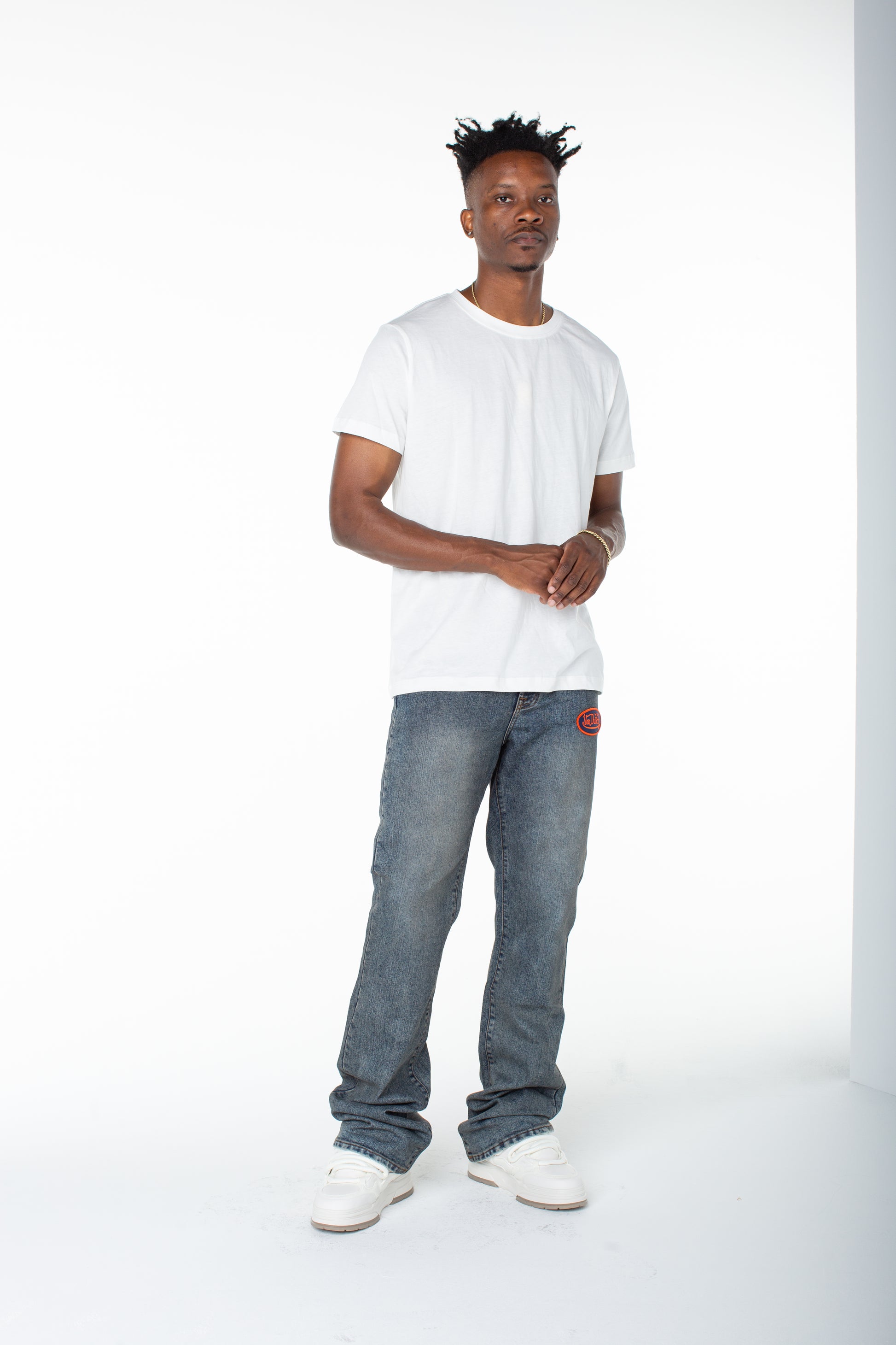 Serve streetwear in a stacked flare that features a patch on the top left leg and a Von Dutch logo across your bottom half. This goes perfectly with the coordinated Trucker Sherpa.