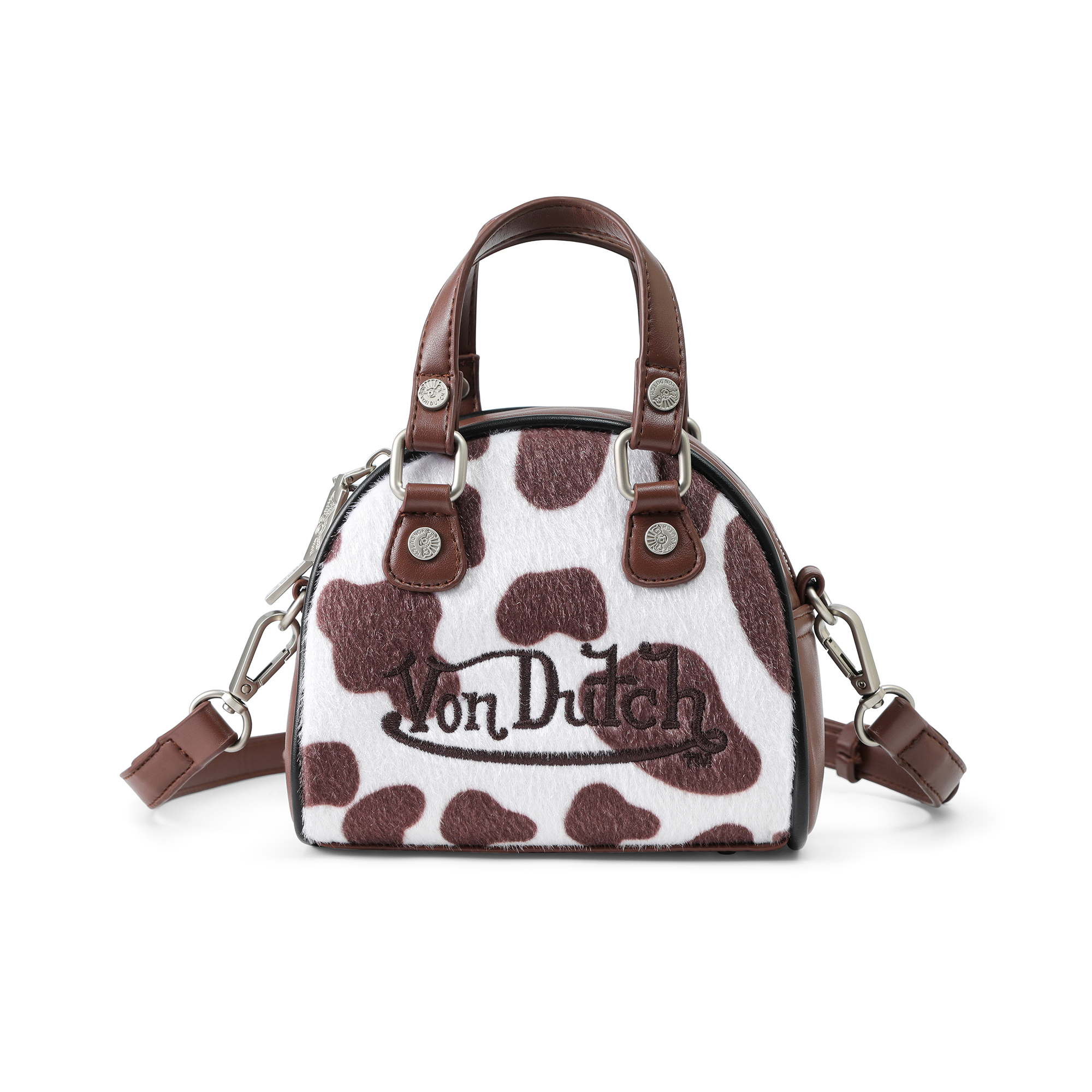 Von Dutch Mini Cow Print Bowling Bag - Brown and White