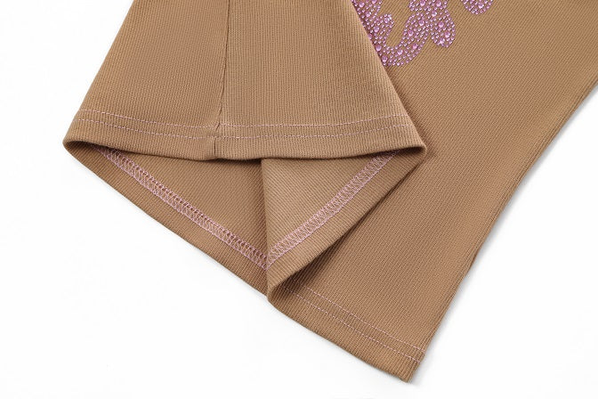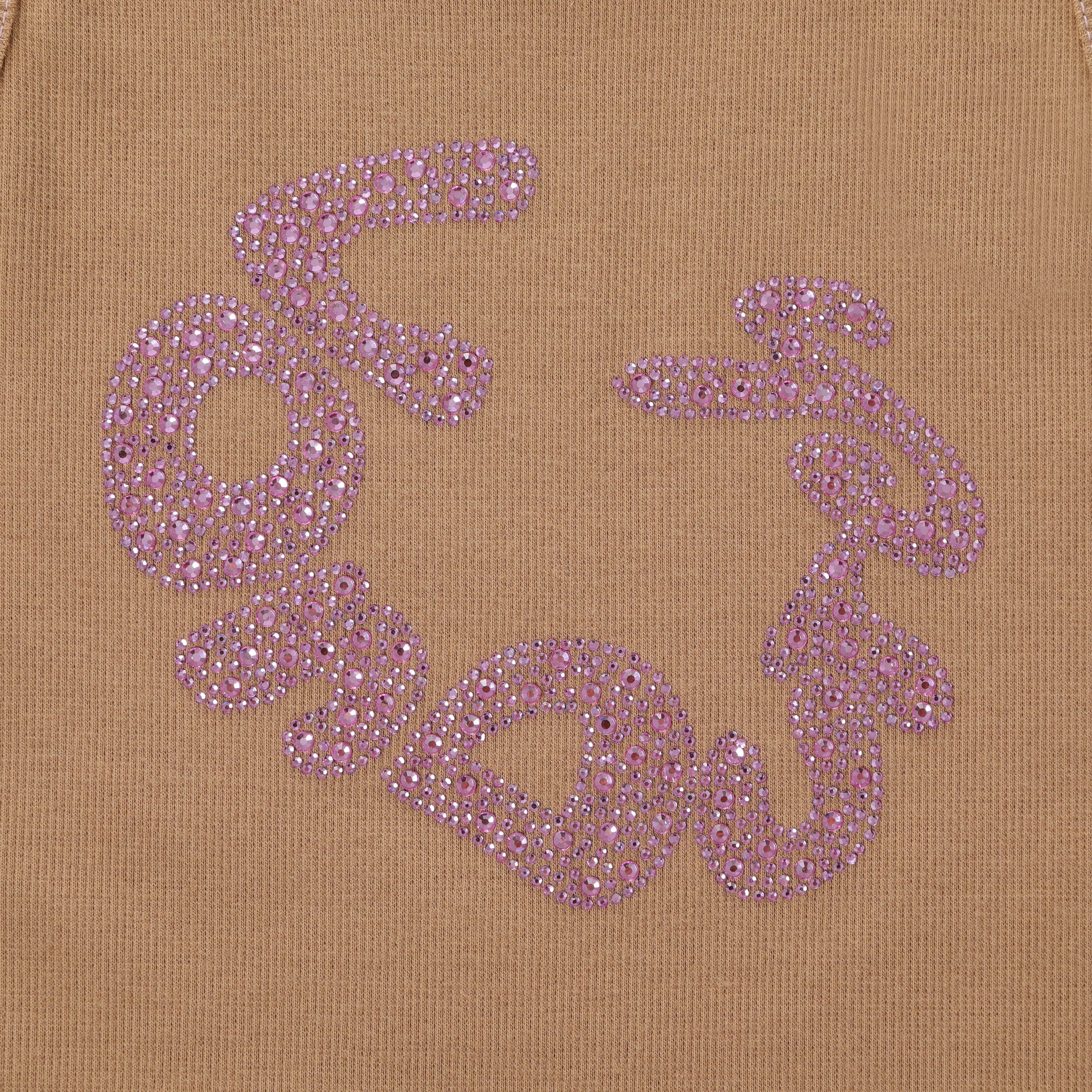 Gold rhinestone Von Dutch circular logo across the chest