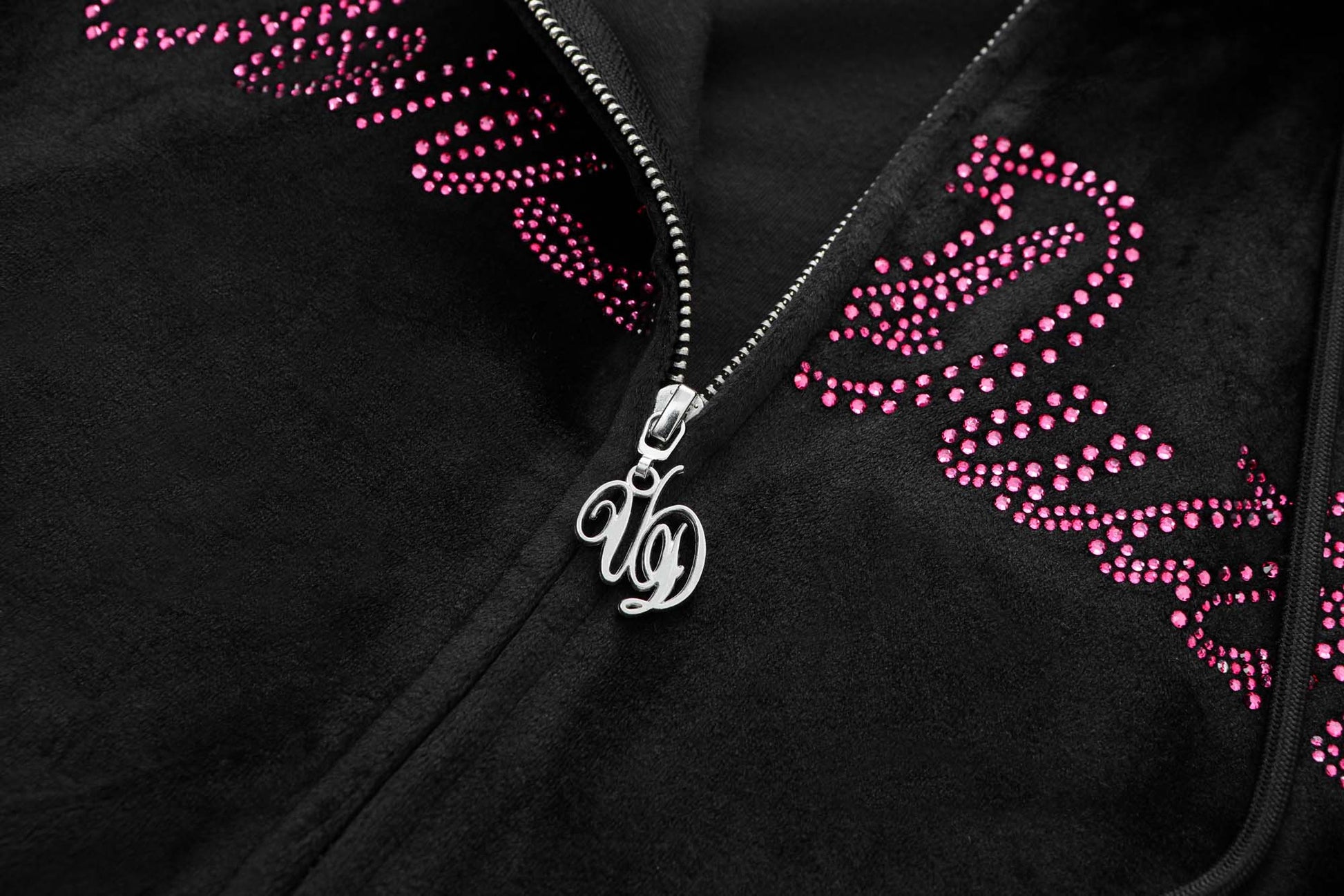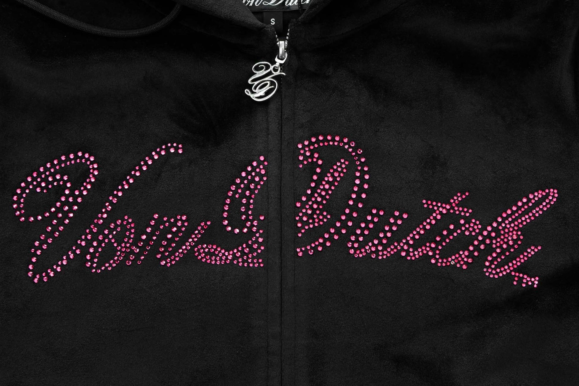 Velour Zip-Up Hoodie — Rhinestone Logo