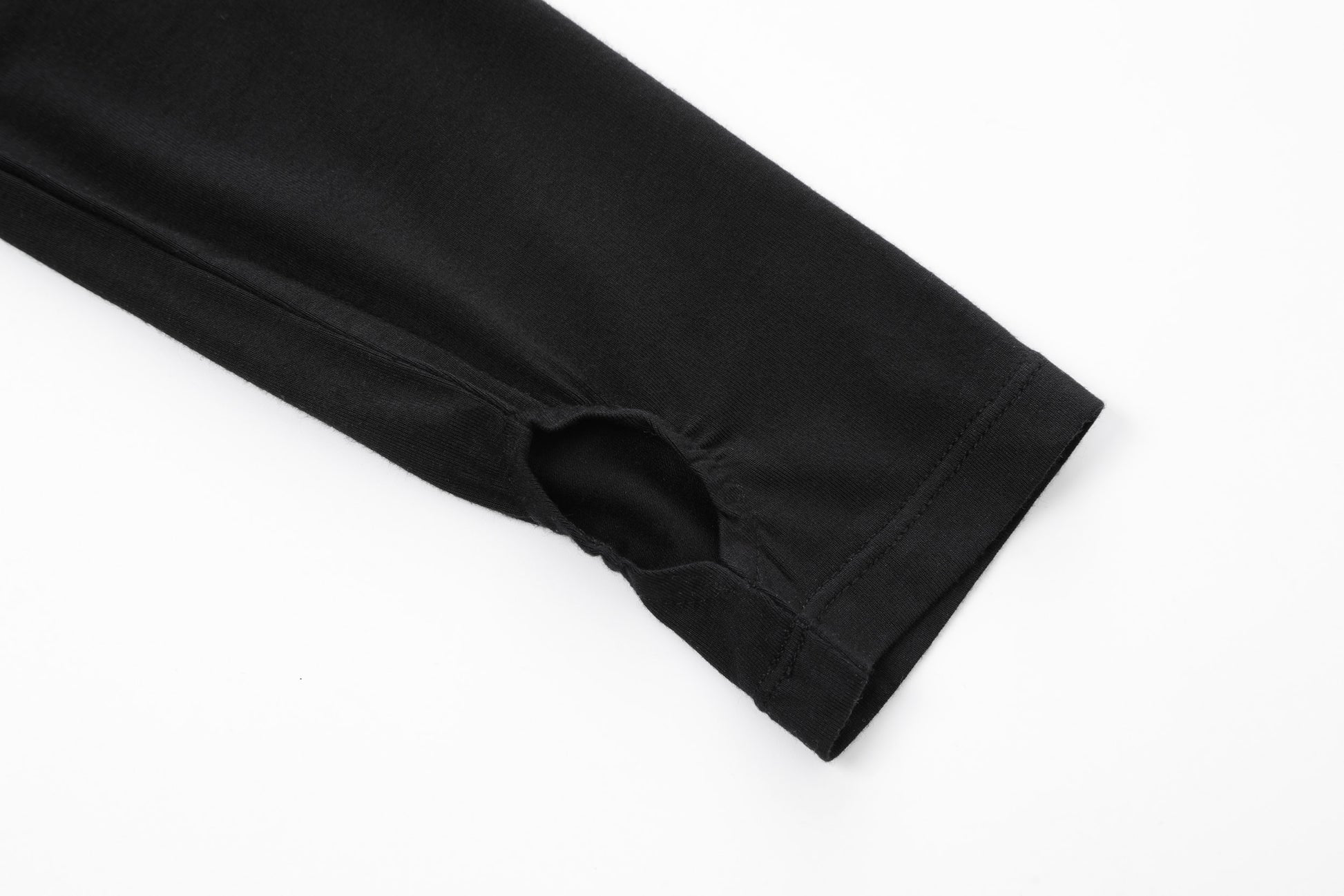 • Long sleeves with fitted silhouette with sleeve finger cut outs